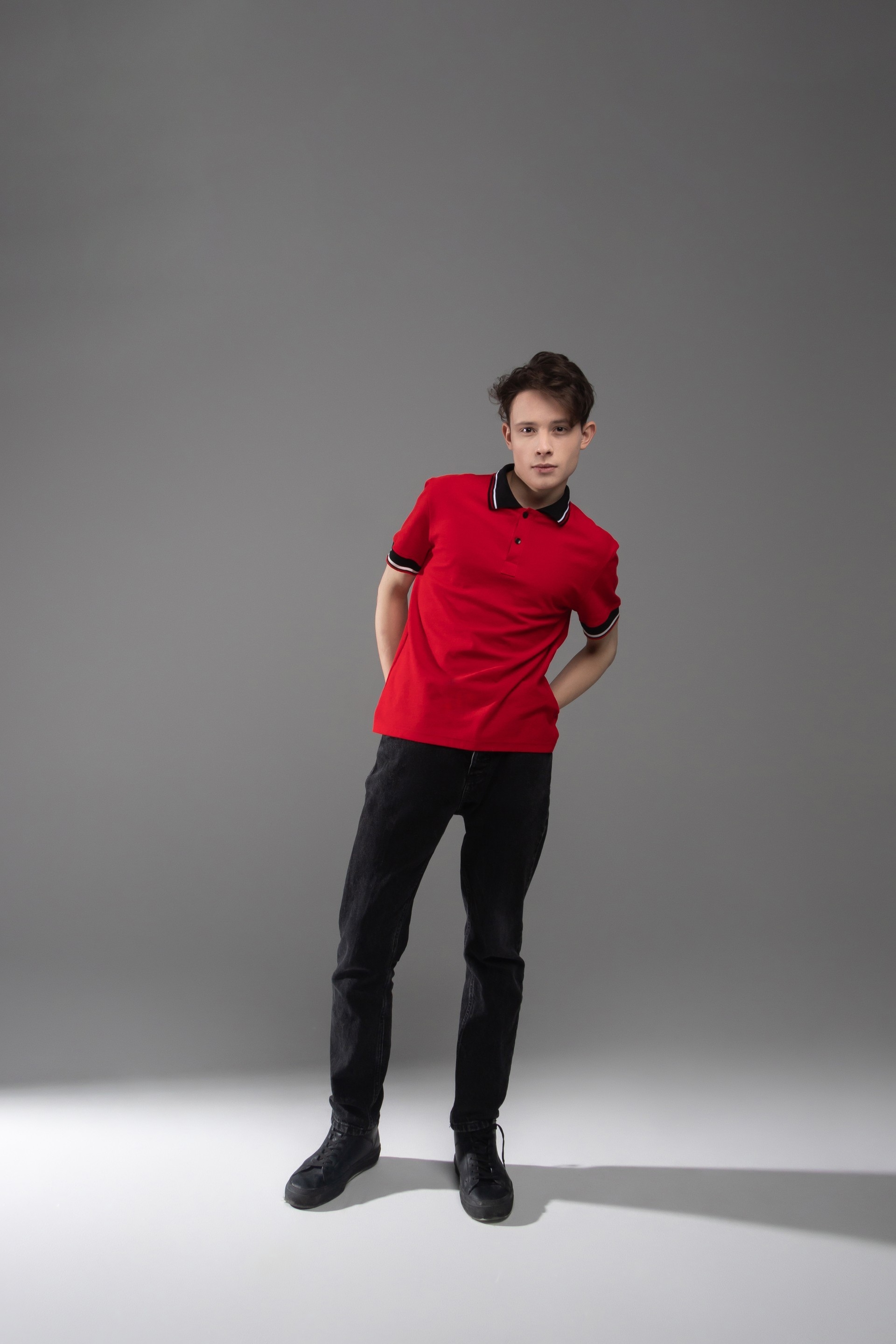 Это базовая рубашка поло прямого кроя с рубашечным воротом, планкой на пуговицах и втачными рукавами. Двойная отсрочка плечевого шва и горловины.